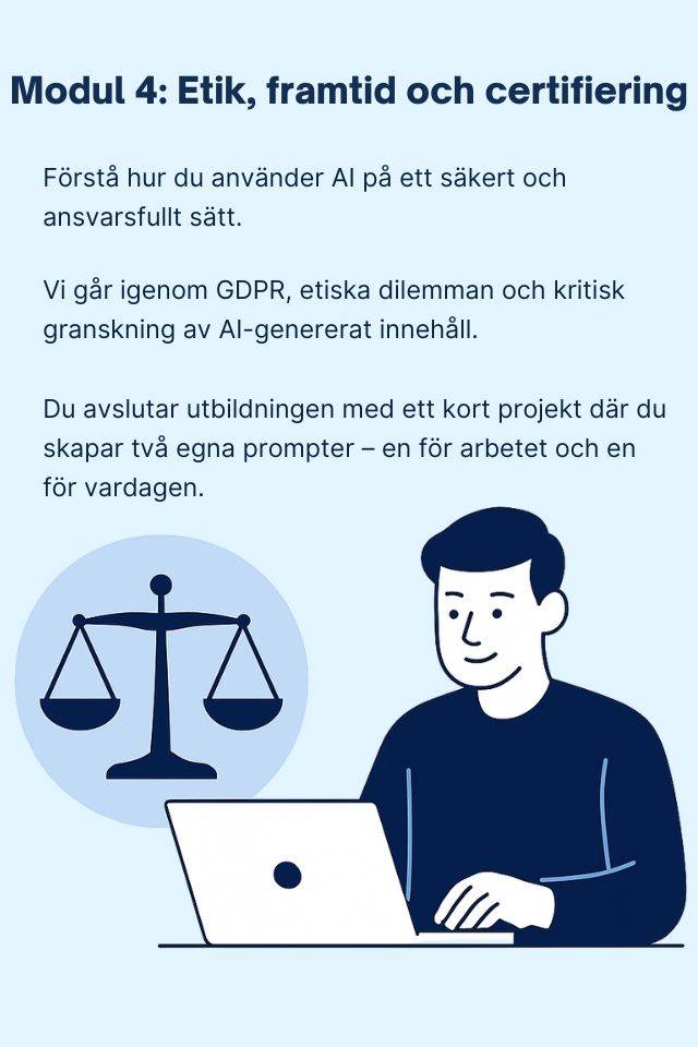 Utbildningen fungerar som ett modernt datakörkort för AI – en kompetens som snart blir lika självklar som att kunna använda mejl eller Office-program.